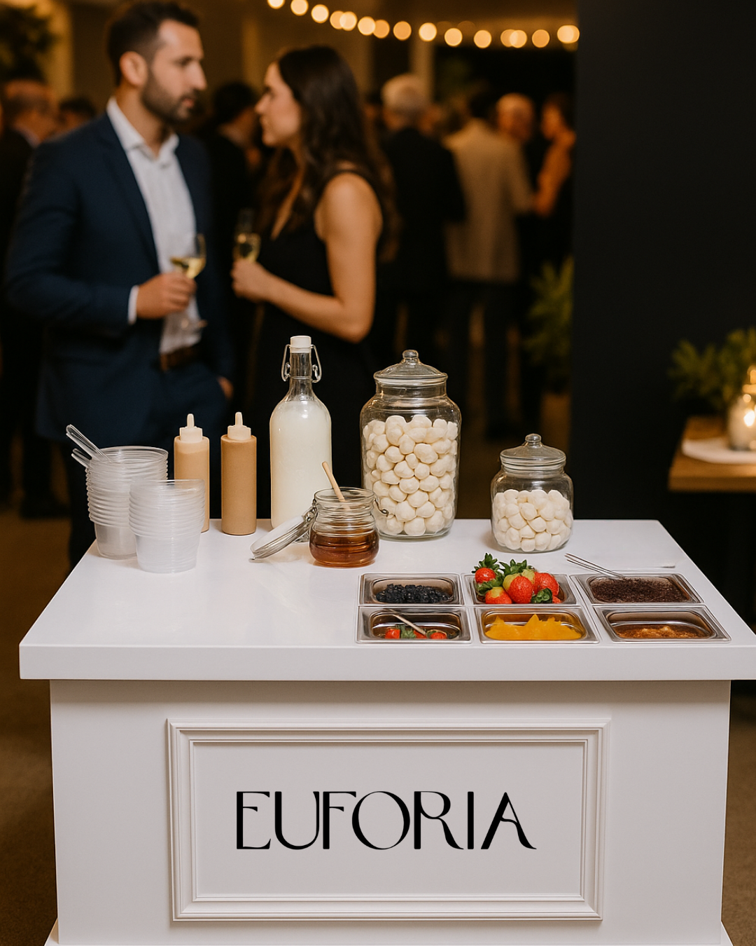 Ofrecemos experiencias únicas que despiertan todos los sentidos. Desde una fuente de chocolate belga hasta estaciones de charcutería gourmet, combinados con los mejores productos nacionales y seleccionados cuidadosamente, cada detalle en EUFORIA está pensado para elevar tu evento al siguiente nivel.